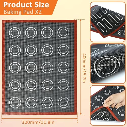 2Pcs Tapis de Cuisson en Silicone pour Macarons, Tapis de Cuisson Silicone Micro Perforé pour Four Anti-Adhérent, Patisserie Accessoires Professionnel Réutilisable pour Macaron/Biscuit