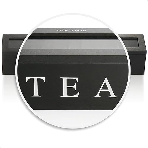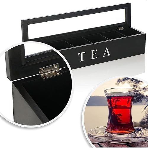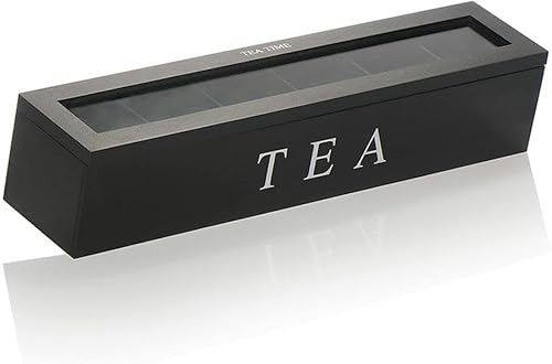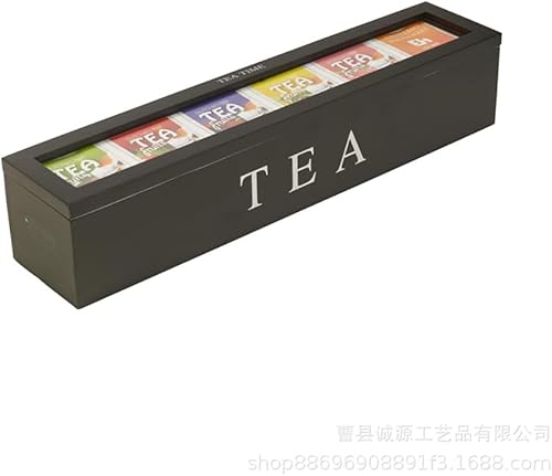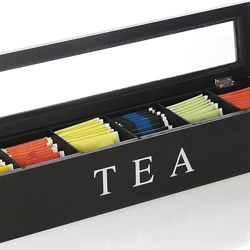 Glorlliant Support pour Sachets de Thé avec 6 Compartiments, Station de Café en Bois Organisateur de Condiments, Boîte à Thé Panier de Rangement pour Paquet de Sucre