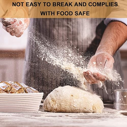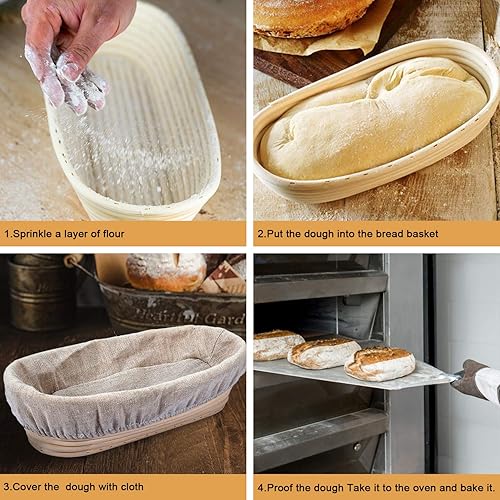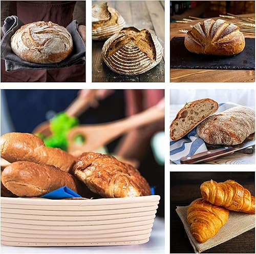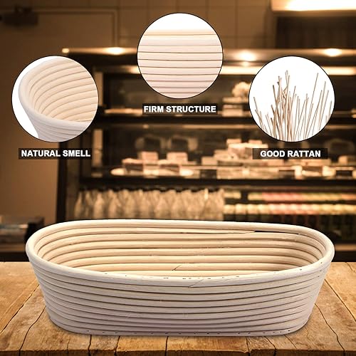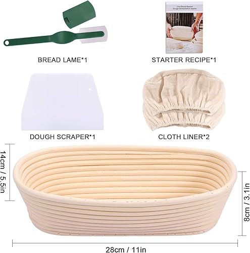 Gifort Banneton à Pain, Banneton Ovale 750g de 28 x 14 x 8 cm, Panier Banneton Brotform en Rotin Naturel pour Pain et Levain avec Tissu en Lin, Racloir Pâte et Lame Boulanger (Ovale-28x14x8 cm)