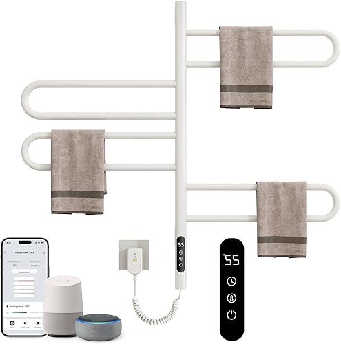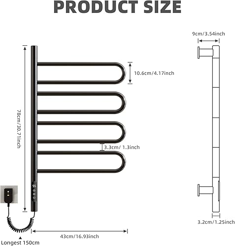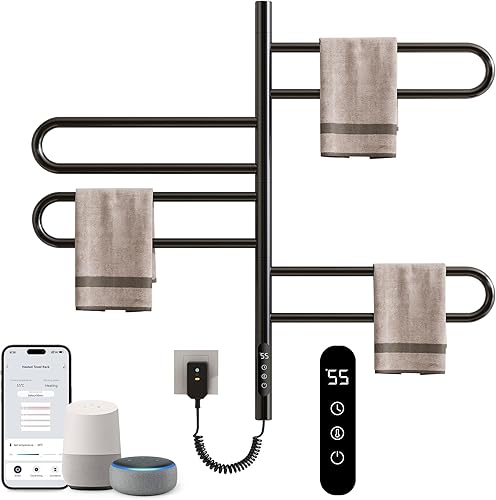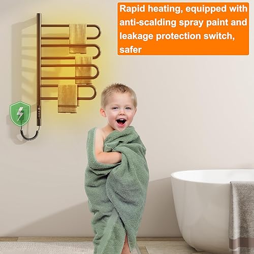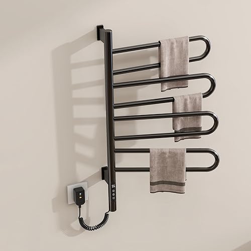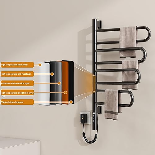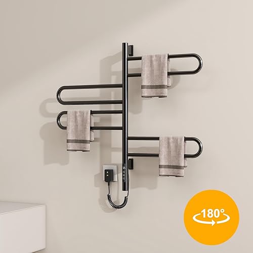 Seche Serviette Electrique, Rotation à 180° Seche Serviette, Noir Seche Serviette Salle de Bain, 170W, Chauffage en Fibre de Carbone, avec Minuterie/Température Réglable, Économie d'énergie-Black