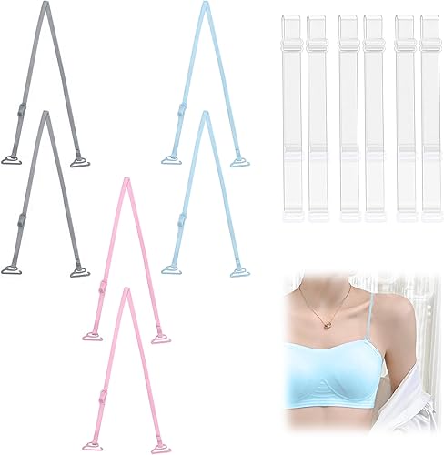 LIANCHEN 3 Pcs 5mm Rechange Femmes Bretelles de Soutien-Gorge Élastiques et 3 Pcs 12mm Réglables Bretelles de Soutien-Gorge Transparentes, Bretelles pour Robe Femmes