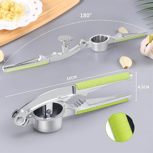 Presse Ail Manuel,2 en 1 Presse-Ail Broyeur Garlic Press avec et Brosse de Nettoyage Hachoir à Aile,Facile à Presser et Utiliser et à Nettoyer