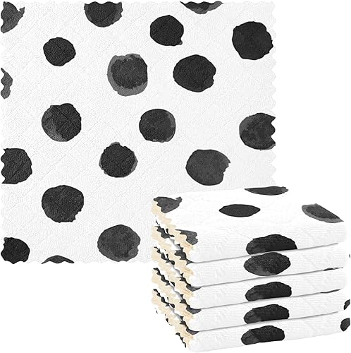 FRODOTGV Lot de 6 torchons turcs en microfibre à pois noirs aquarelles absorbants pour cuisine, essentiels décoratifs essentiels de la ferme classique