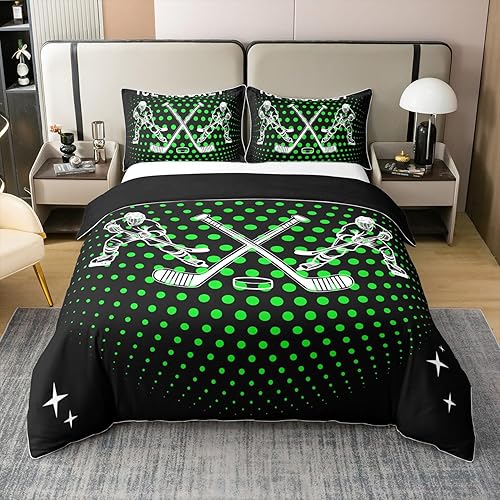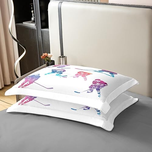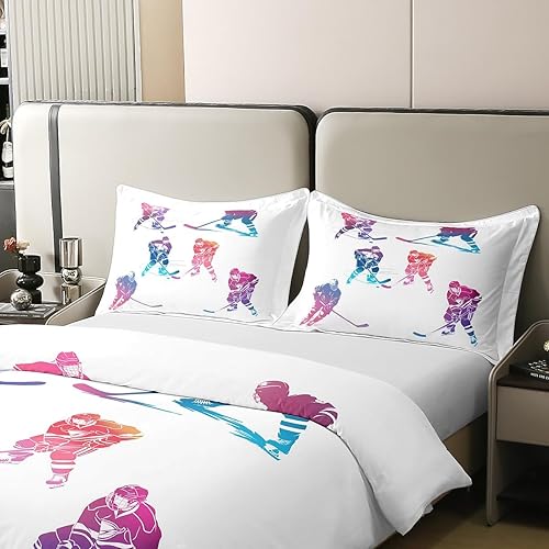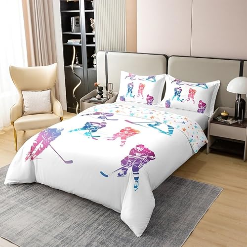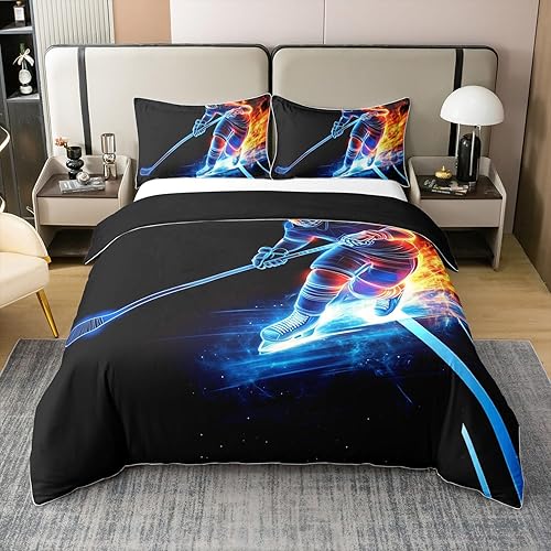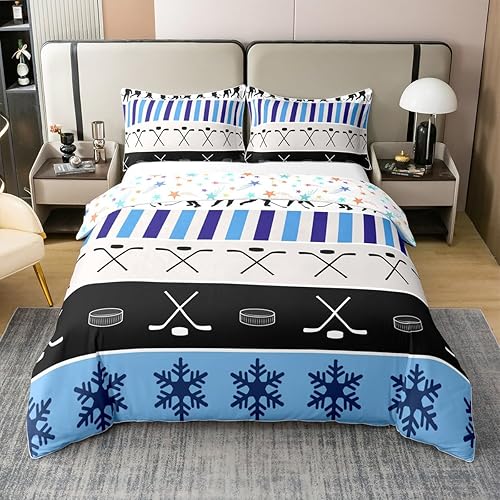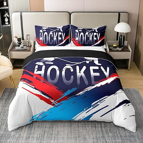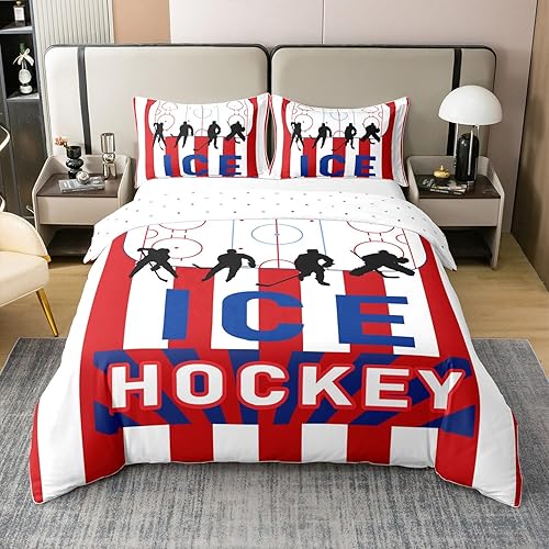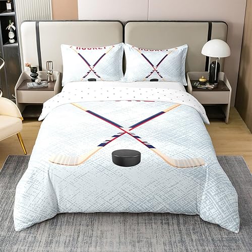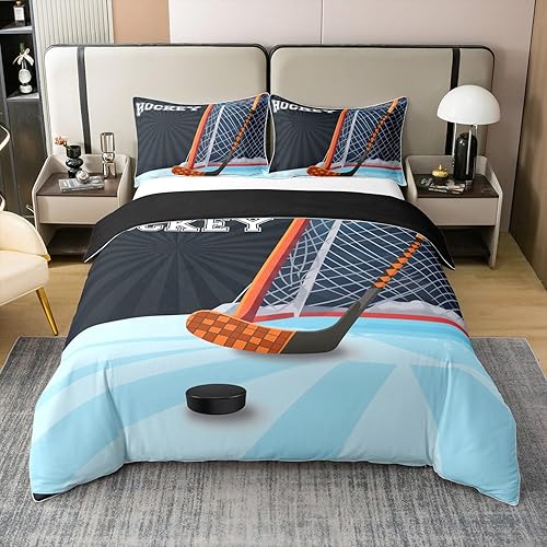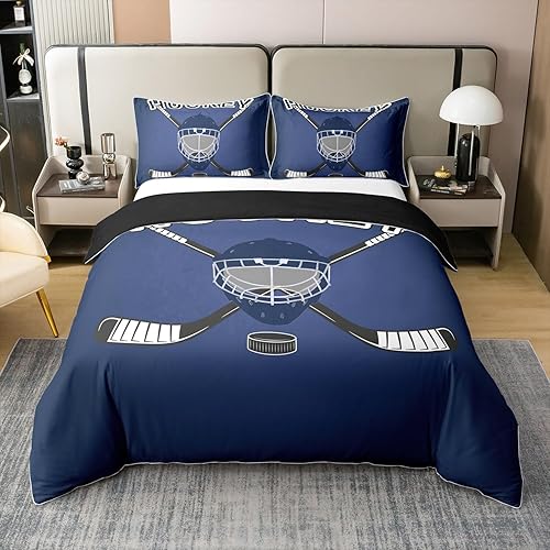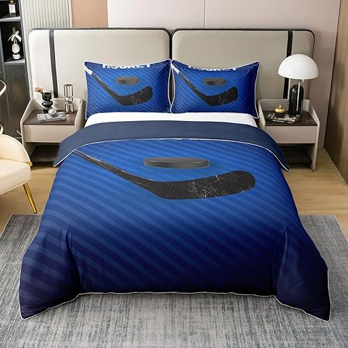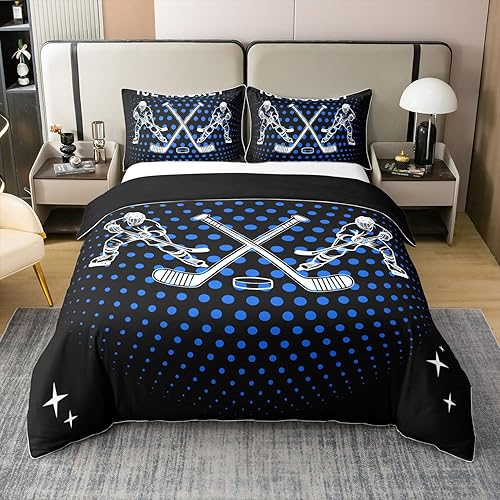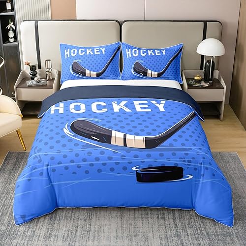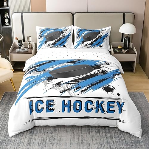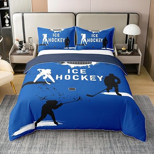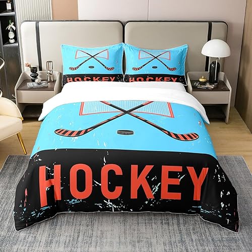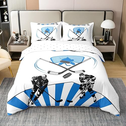 Homemissing Jeux de Sports de Glace 100% Coton Housse de Couette 140x200cm Hockey sur Glace Parure de Lit Hockey sur Glace pour Ensemble de lit Hockey sur Glace Bleu Literie Set décoration de Chambre