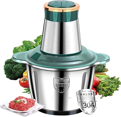 Hachoir Électrique Avec Bol Acier Inox 5L, Hachoir à Viande 500W Avec 5 Lames En Inox,Robot Mixeur Petit Avec 3 Niveaux De Vitesse,Pour Hacher Viande, Oignon,Oeufs, Jus D'orange, Pâte (B)