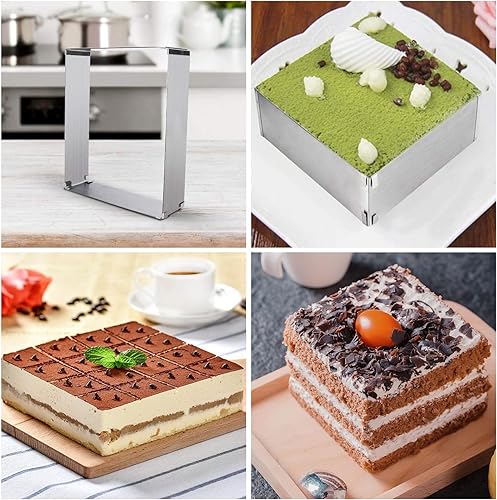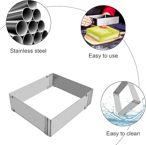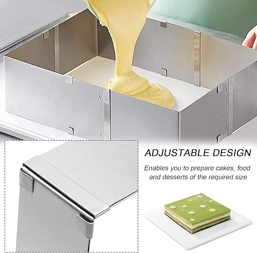 Réglable Moule Gateau Carré Moule Pâtisserie Rectangulaire Acier Inoxydable Cadre À Pâtisserie Rectangulair Moule A Patisserie Reglable Cadre Anneau De Gâteau Rectangulaire Pour Mousse,crème Glacée