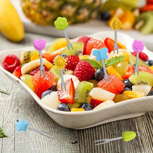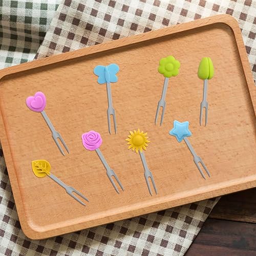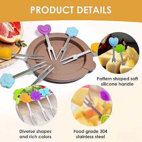 Lot De 6 Fourchettes à Fruits En Acier Inoxydable,Fourchettes à Salade Pour Enfants,Motif De Dessin Animé Mignon En Silicone Fourchette à Dessert,pour Fêtes,Pique-Nique,Maison, Restaurant