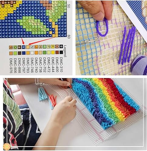 Kits De Crochets De Loquet Kits De Coussin De Crochet De Loquet Rose Rouge Kit De Coussin De Crochet De Loquet De Fleurs Fantaisie,Housse D'Oreiller Bricolage Faisant De La Toile Imprimée 43x43cm