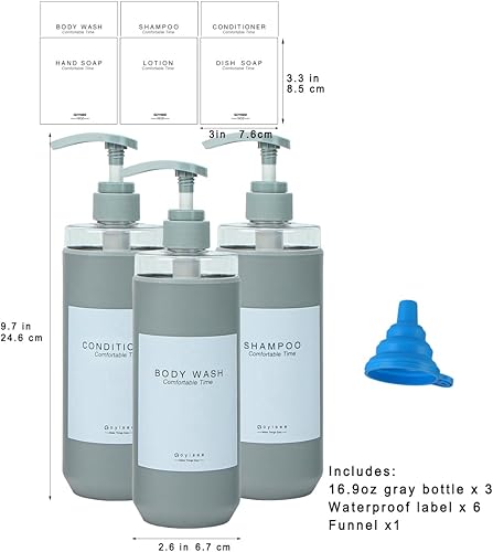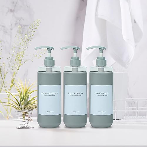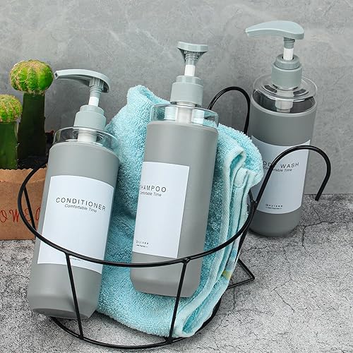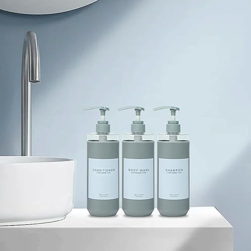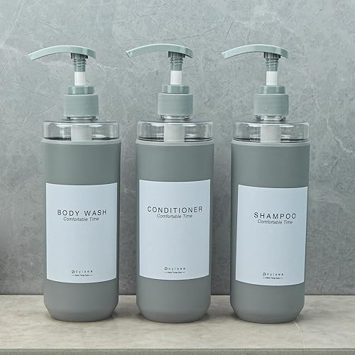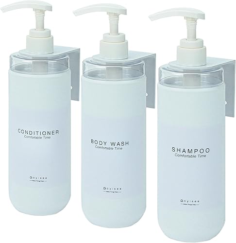 Distributeur de Douche GOYISEE, 3 Bouteilles en Plastique pour Savon et shampooing (Gray-3Pack), Accessoire de Salle de Bain Pratique