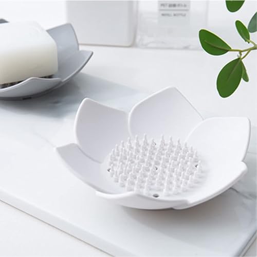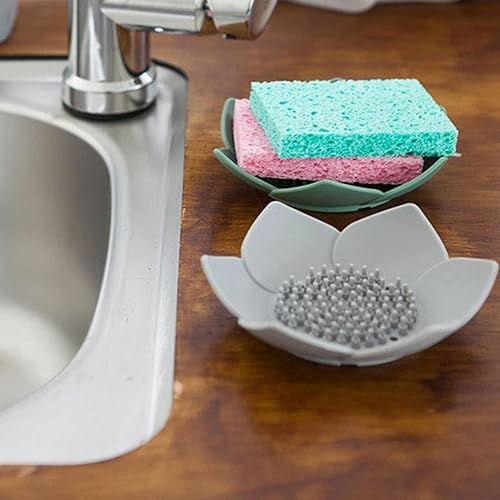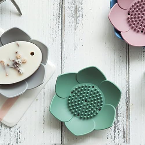 Porte-savon en forme de fleur de lotus - Porte-savon en silicone - Pour salle de bain, douche, cuisine - Bleu