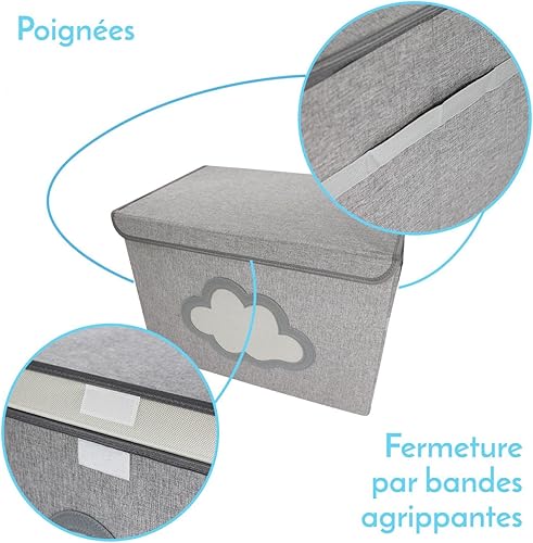 Monsieur Bébé - Boite de rangement, coffre à jouets pour enfant avec couvercle - 50 x 35.5 x 35 cm - Gris Nuage