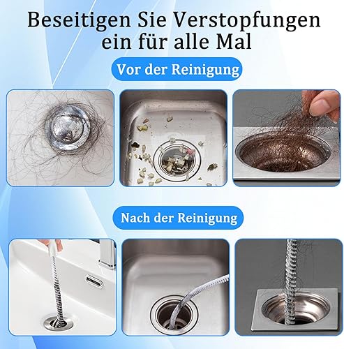 Lot de 2 déboucheurs en spirale - Double tête - Brosse flexible - Pour débouchage de canalisations - Spirale de vidange pour la cuisine et la douche