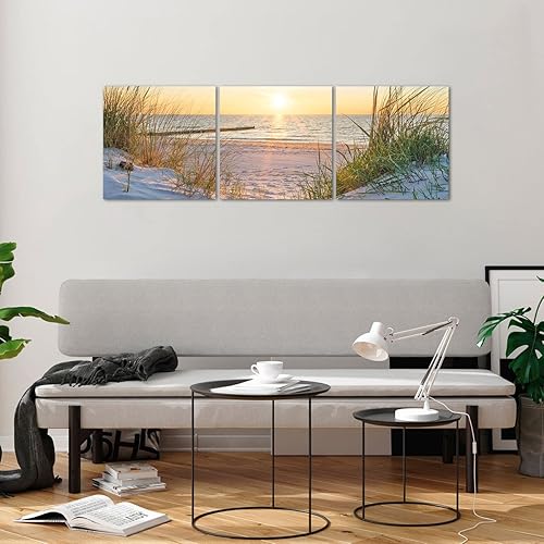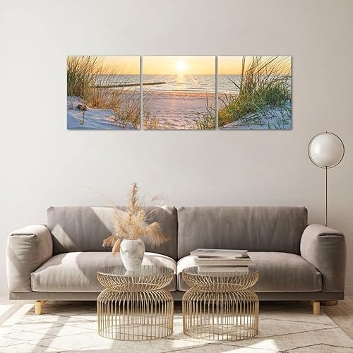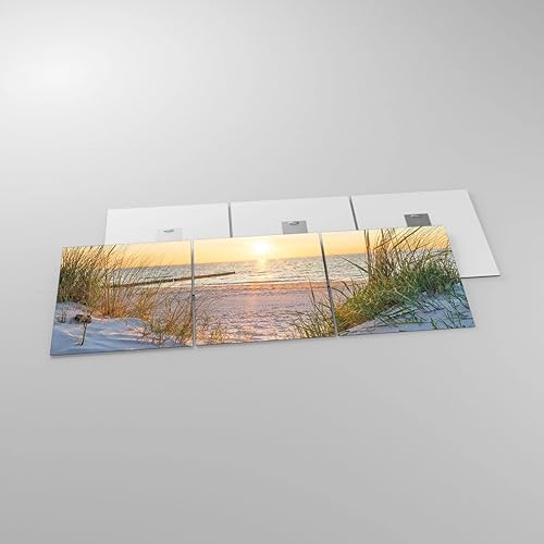 Deco Cadre Salon dune plage mer Moderne Impression sur Verre 150x50cm Image Tableau en Verre Decoration Murale Chambre Triptyque 3 parties Art Grand XXL Tableaux Decoratifs Muraux GCA150x50-3989