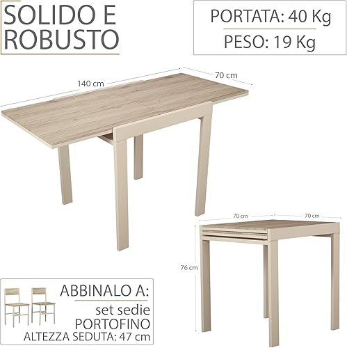 YELLOO Mod. Sanremo Table Bar Cuisine 70x70 Extensible 70x140 cm Beige Cuisine