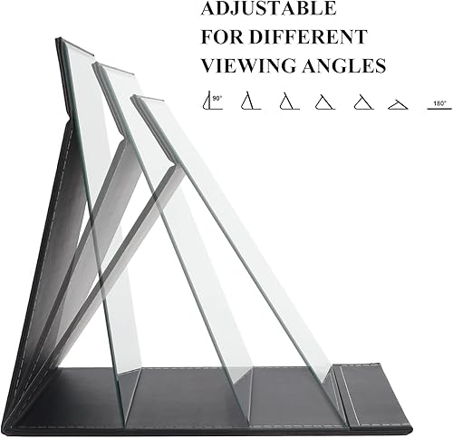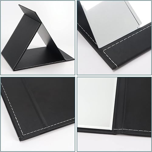 Miroir de maquillage pliable portable extra large de 30,5 x 22,9 cm, en cuir synthétique sans cadre avec support pour bureau, table, camping, voyage, personnel, noir