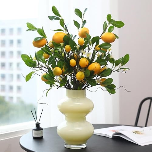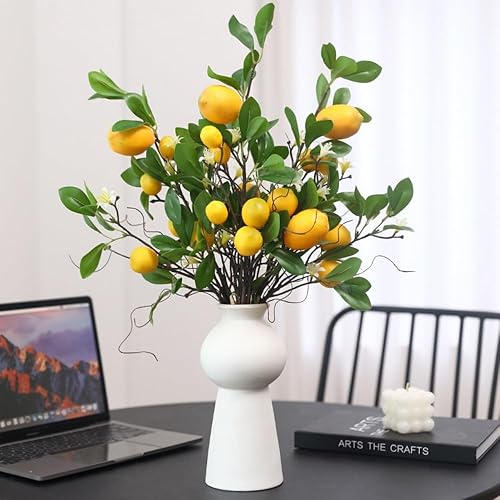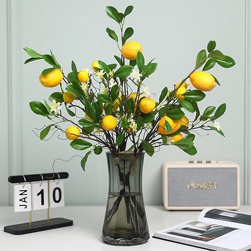Xshelley Lot de 2 bouquets de branches de citron artificielles, 8 tiges de citron, faux citrons avec tige de citron, pour chambre, cuisine, bureau, extérieur et décoration de ferme