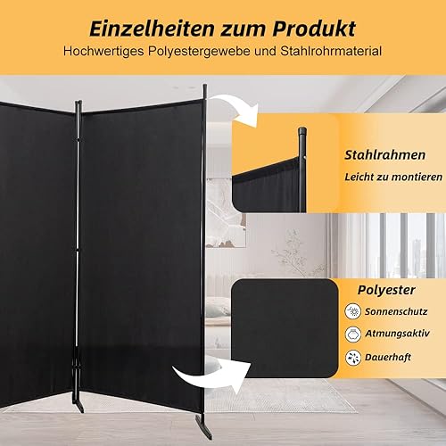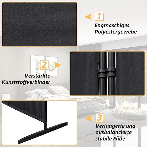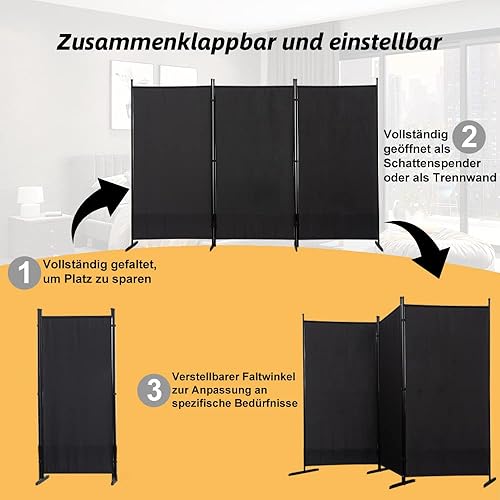 Mingone Paravent de séparation intérieur jardin mur espagnol balcon brise-vue paravent en tissu 3 pièces pour bureau 260 x 180 cm Grand anthracite