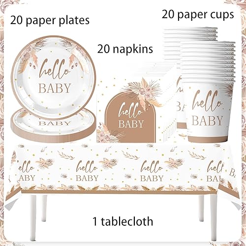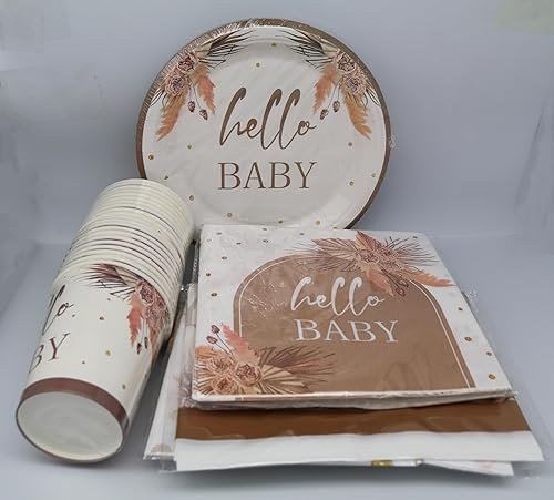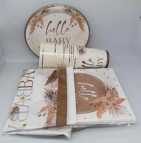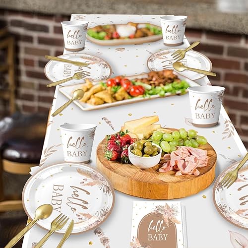Vaisselle de fête de baptême, 61 pièces (assiettes, gobelets, serviettes, nappes), vaisselle de fête de baptême pour 20 invités