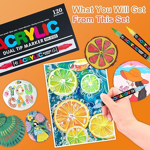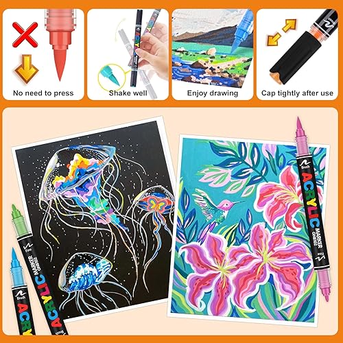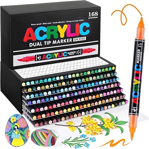 168 Couleurs Marqueur Peinture Acrylique Double Pointe, Feutre Acrylique pour Coloriage Adulte & Mystère, Stylo Peinture avec Pointe Pinceau (0.5-4.5mm) et Pointe Fine (1mm) – Feutre pour Verre, Bois