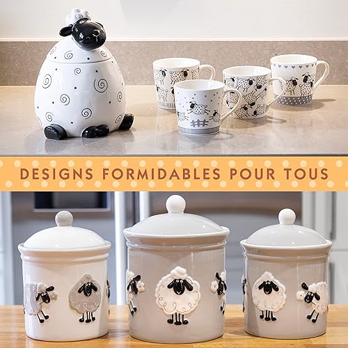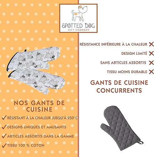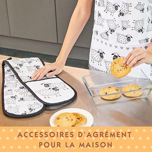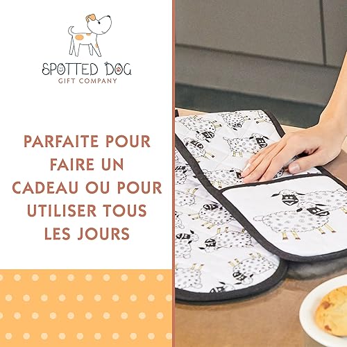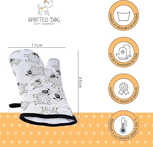 SPOTTED DOG GIFT COMPANY Gants de Four Anti Chaleur au Mignon Mouton Imprimé, 100% Coton Maniques Cuisine avec Boucle Suspendue, Idées Cadeau pour Les Amoureux des Moutons, 1 Paire 35x17cm