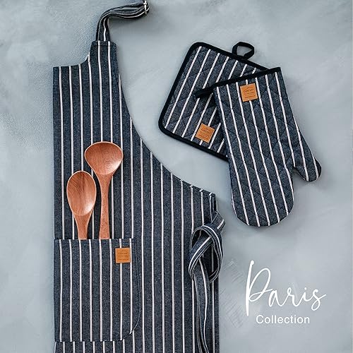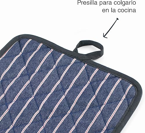 Lacor - 60044 - Mitaines Four Paris Collection, Résistant à la Chaleur, Sangle Suspendue, 20 x 20 cm, Bleu Marine