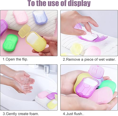 DHWEKU Savon en Papier jetable,4x boîtes (80 feuilles au total) de feuilles de savon, savon jetable portable voyage, Feuilles de Savon pour Les Mains, Feuille de Savon Nomade,4 Couleurs