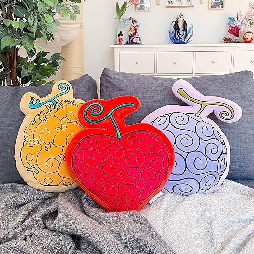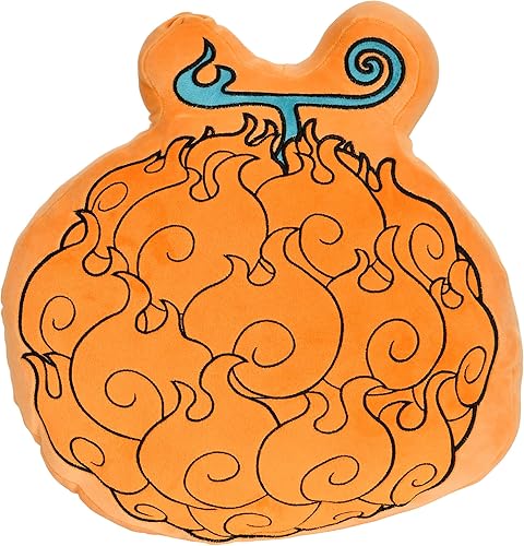 Elbenwald One Piece Coussin fruit du diable au design Mera Mera - 35 x 36,5 x 9,5 cm - Pour fans d'anime - Unisexe - Jaune