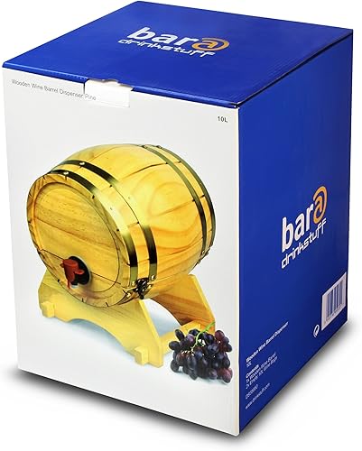 bar@drinkstuff Tonneau sur support , distributeur à vin en bois pin naturel 10 litres – style vintage,avec robinet