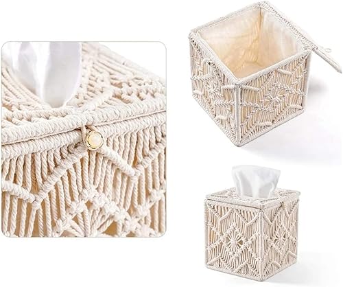 Peowuieu Boîte à mouchoirs en papier, décoration bohème, porte-mouchoirs carré avec boucle de perles, serviette en macramé, organisateur de mouchoirs, décoration de