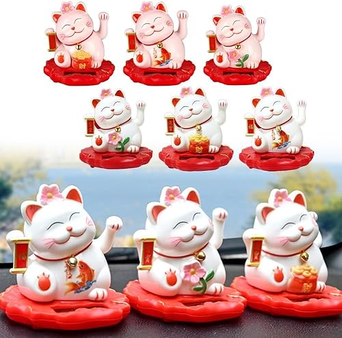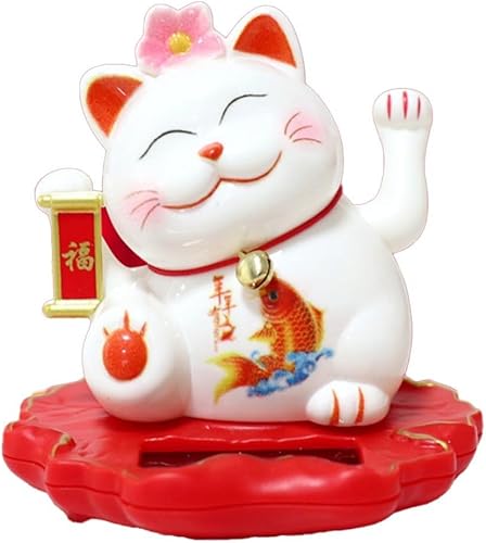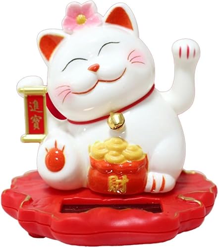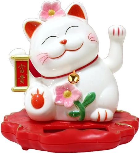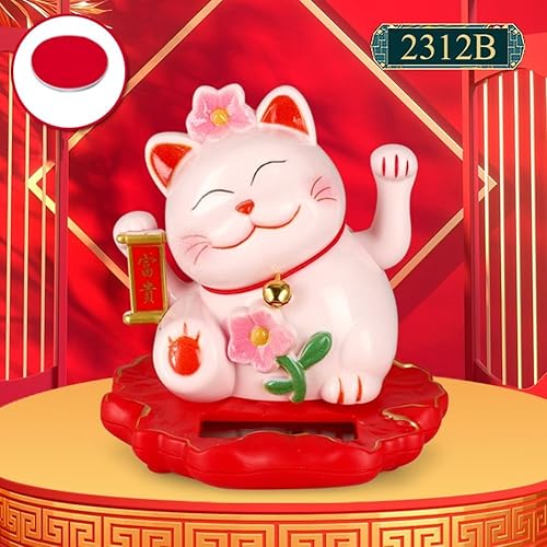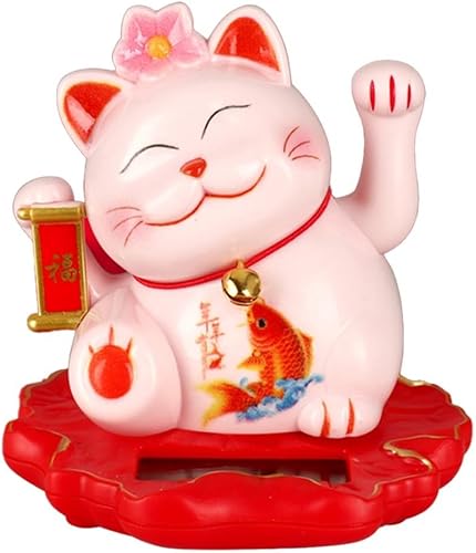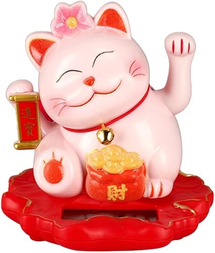 Jayruit Décoration solaire en forme de chat porte-bonheur alimenté par le slar qui agite automatiquement ses mains (2312-rose)