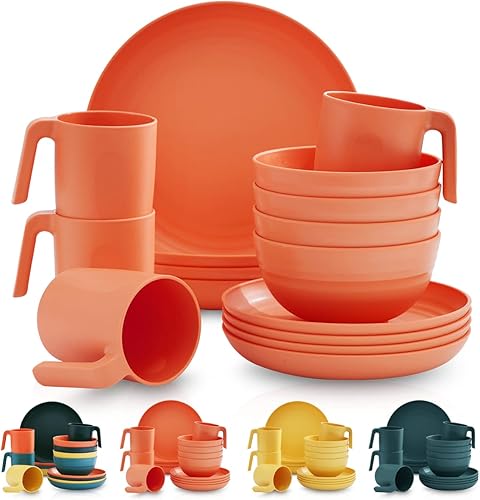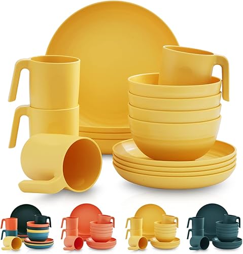 Kyraton Assiettes Service de Table plastique 16 PCS, vaisselle et arts de la table Non fragile et léger Idéal pour voyage, pique nique, intérieur, extérieur, micro ondes sécurité