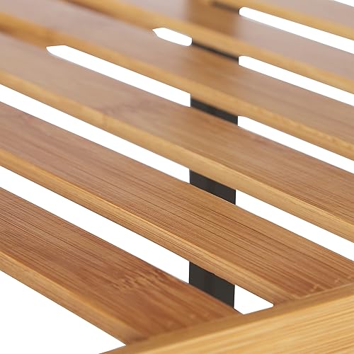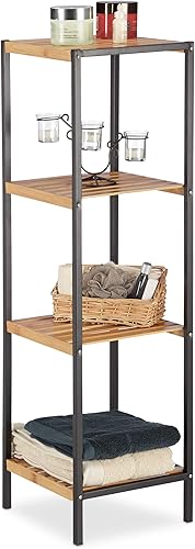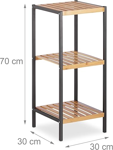 Relaxdays Étagère en Bambou, Universel Sur Pieds, Plusieurs Étages, Cadre en Métal, Carrée, SDB, 3 Niveaux, Nature
