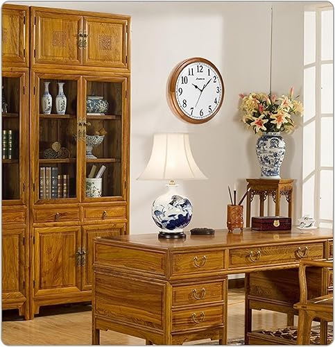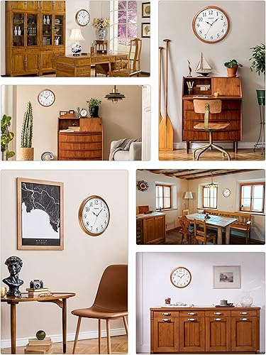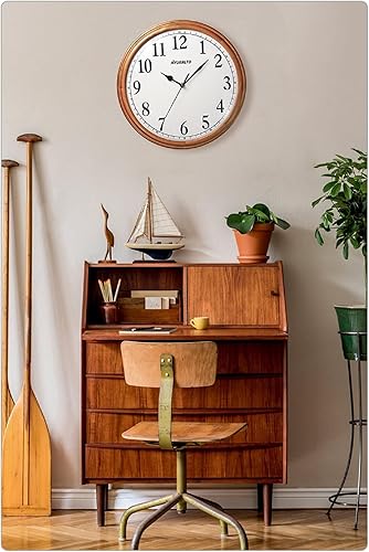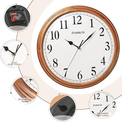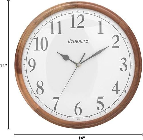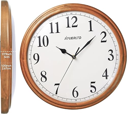 JIYUERLTD Horloge Murale rétro silencieuse en Bois de 35,6 cm, sans tic-tac, Grande Horloge décorative à Quartz à Piles pour Chambre à Coucher, Salon, Cuisine (Large 35cm)