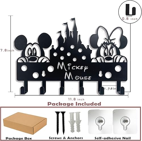 Viiluuxr Dessin Animé Accroche Porte Clé en Métal Accroche Clef Mural Decoration Maison Porte Manteau Pour Porte Salon Cuisine Boite a Clef Crochet Rangement Patere Murale Enfant Noir 30 cm.