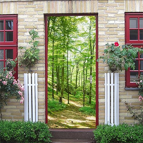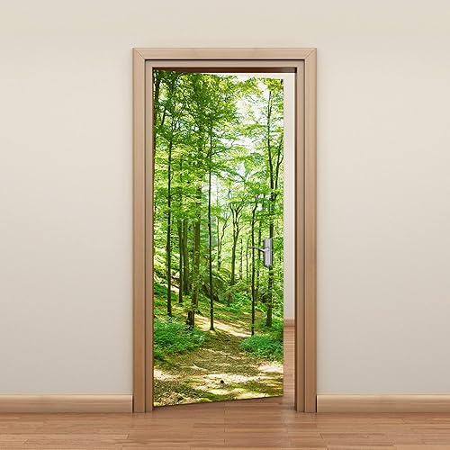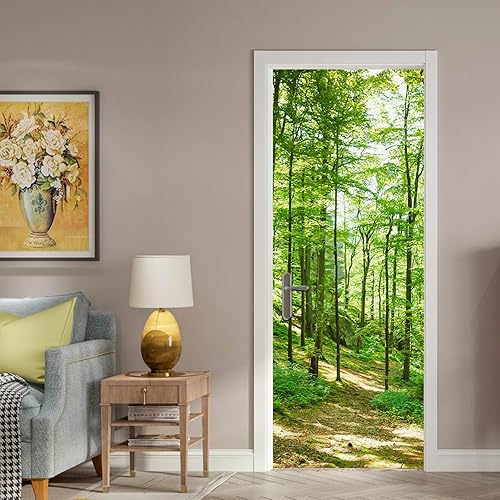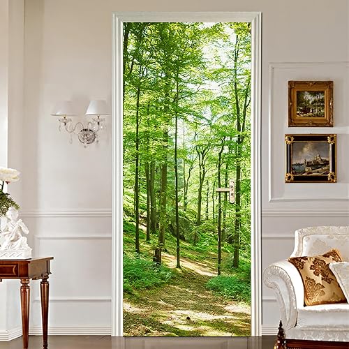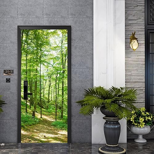 Stickers Porte Les Arbres Verts De La Forêt - Autocollants de Décoration PVC Amovible Imperméable Auto Adhésif pour Placard 77x200cm