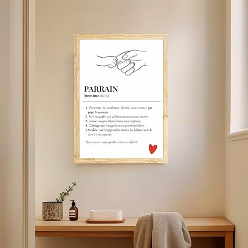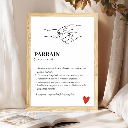 Affiche définition parrain,Affiche Parrain, Définition Parrain, Cadeau parrain, Cadeau baptême parrain, idée cadeau parrain filleul (avec cadre)