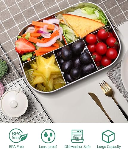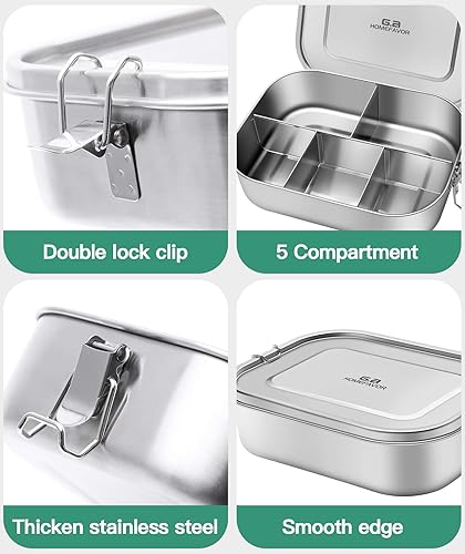 G.a HOMEFAVOR 1400ml Boite à Déjeuner en Acier Inoxydable Boîte à Lunch Anti Fuite avec 5 Compartiment pour Pique-Nique Ecole Travail