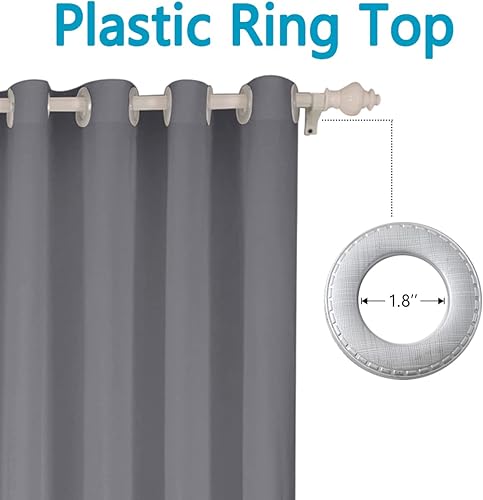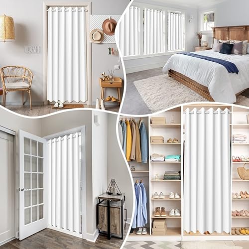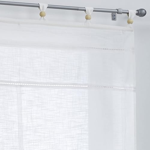 Woody Store romain blanc avec passants et boules en bois, pur coton, aspect lin, largeur 80 cm x hauteur 140 cm