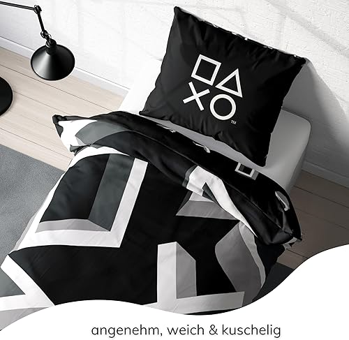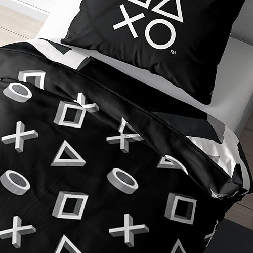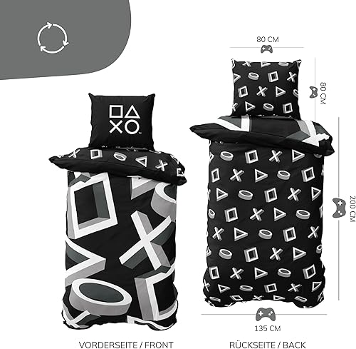Parure de lit Playstation 135 x 200 cm - Idée cadeau - 1 taie d'oreiller 80 x 80 cm + housse de couette 135 x 200 cm - Avec fermeture éclair - Motif réversible - Article de fan Playstation Icons