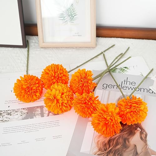 Minnhua 12 Pièces Hortensia Artificielle, Soie Fleur Artificielle Deco, Réaliste Fausse Fleur, Fleurs Artificielles Cimetiere pour La Maison Garden Party Office Décoration (Orange)