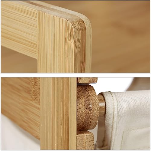 Relaxdays, nature Panier bambou, 2 sacs, 25 L, 2 tiroirs, surface de rangement, coffre à linge, polyester, 1 élément
