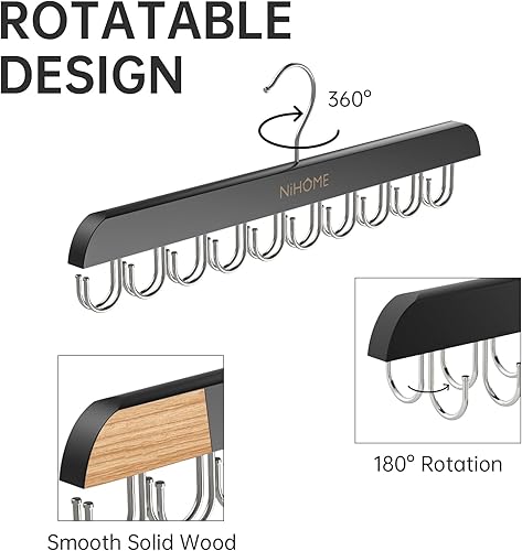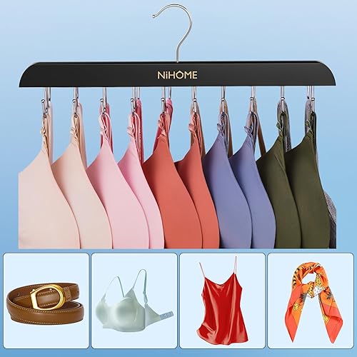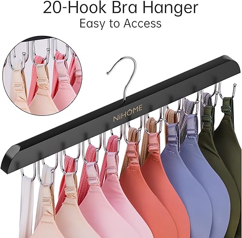 NiHome Lot de 2 crochets rotatifs à double rangée de crochets pour soutien-gorge avec 20 crochets en acier inoxydable, organiseur peu encombrant pour lingerie, écharpes, cravates et accessoires,