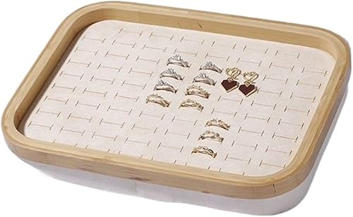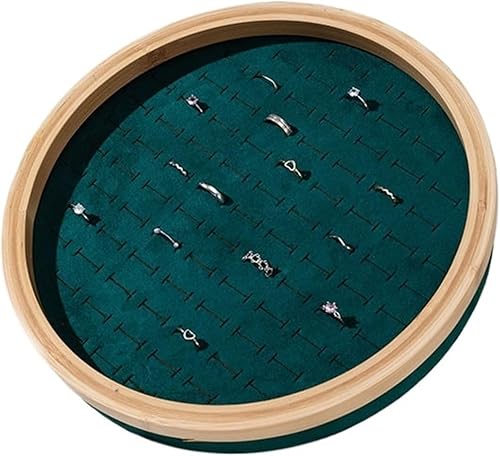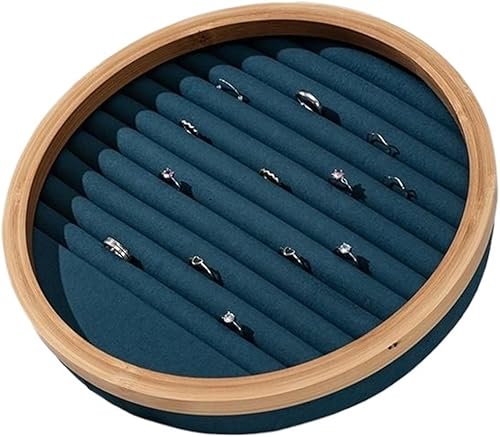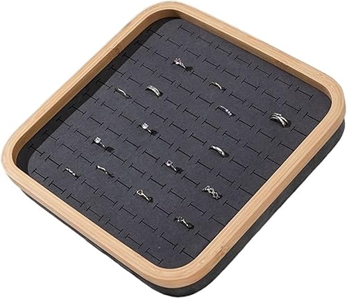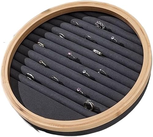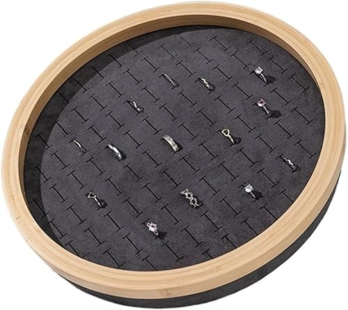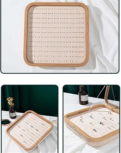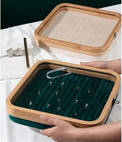 MZSKLW Plateau de Rangement Portable en Bambou et Velours for bagues et Boucles d'oreilles, présentoir à Bijoux, vitrine, étui de Rangement avec Couvercle(30x30cm-02)