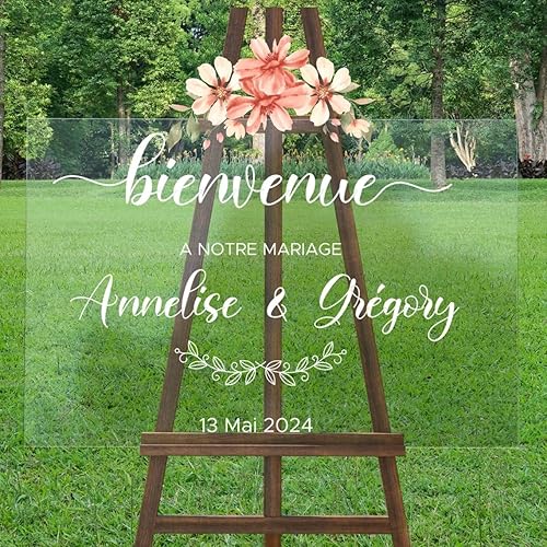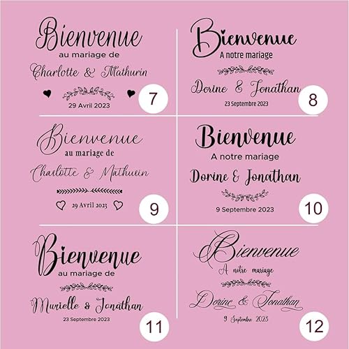 HERSTL Stickers Panneau Bienvenue Mariage Personnalisés, Décoration Mariage Champêtre Stickers Personnalisés, Bienvenue Au Mariage De, À Notre Mariage, Français Welcome Sign