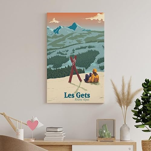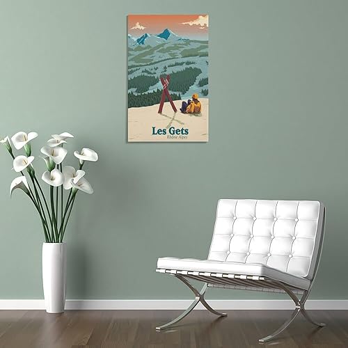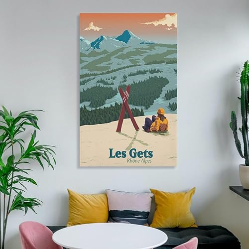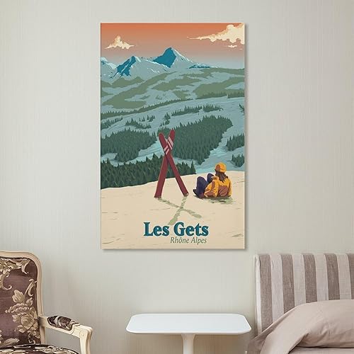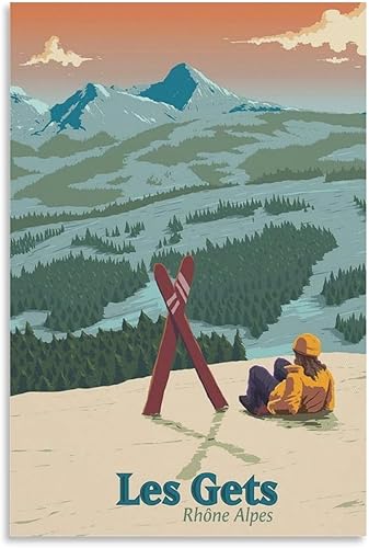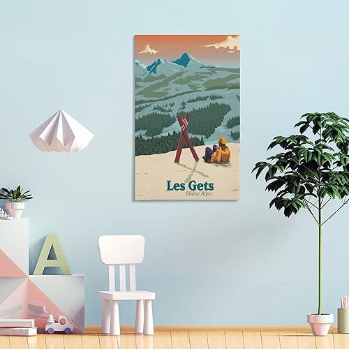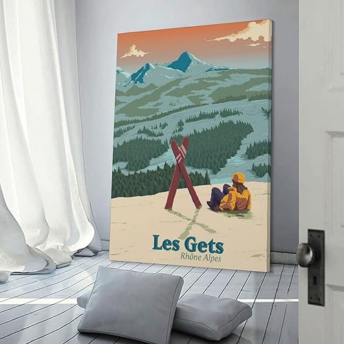 WLQZFRWV Les Gets - Poster sur toile des Alpes françaises - Décoration de chambre à coucher, bureau, chambre - Cadeau - 30 x 45 cm
