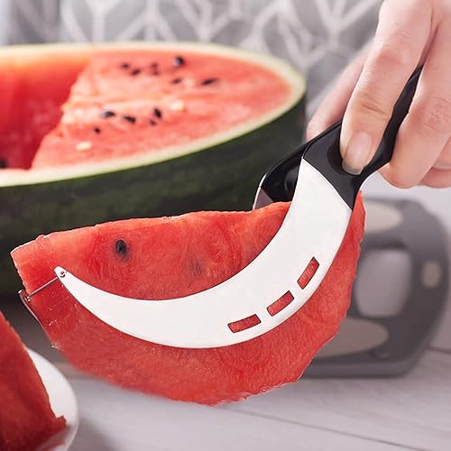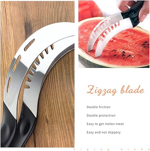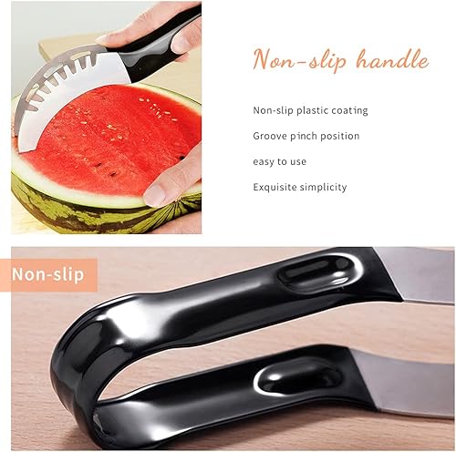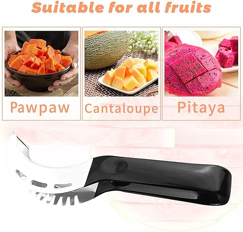 XiXiRan Couteau à Pastèque, Coupeur De Fruits En Acier Inoxydable, Coupeur De Melon Avec Lame De Coupe Crochetée, Couteau à Fruits Multifonctionnel De Papaye, Fruit Du Dragon, Coupeur De Cantaloup.