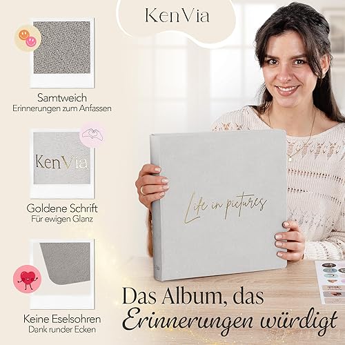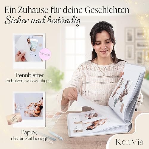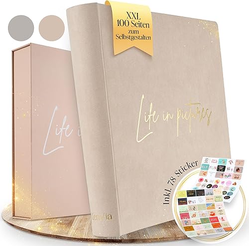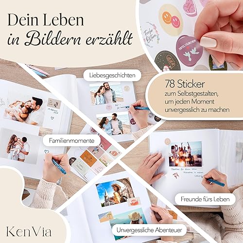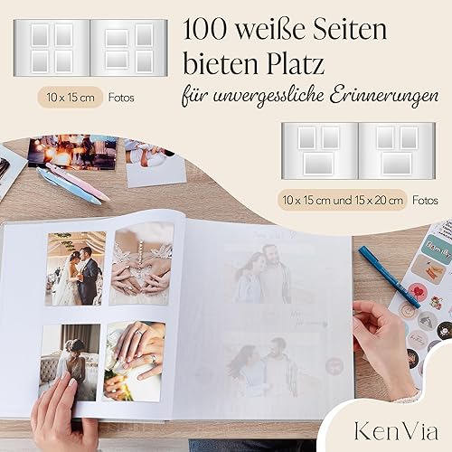 KenVia® Album photo à personnaliser - XXL - 100 pages blanches (50 feuilles) avec autocollants et boîte cadeau - Grand album photo pour 400 photos - Racontez votre vie en images - Nouveau livre photo