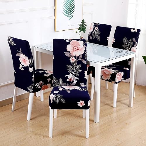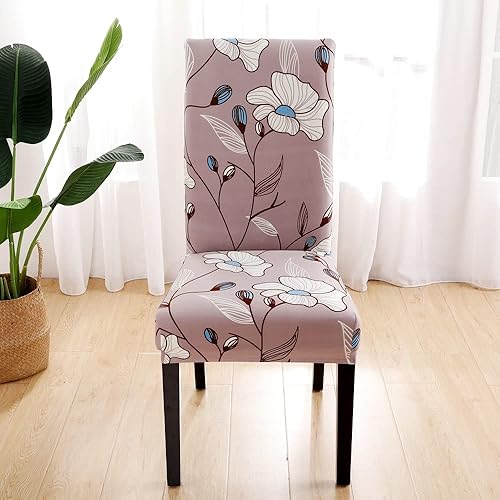 Highdi Housse de Chaise Extensible Lot de 2/4/6, Moderne Couverture Protecteur de Chaise Salle a Manger Universel Amovible Housse Chaise pour Mariage Hôtel Banquet (Fleur Rouge,6 pièces)