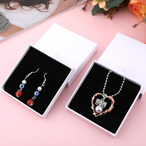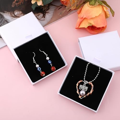Lot de 2 boîtes cadeau pour bijoux, petites, pour bracelet, collier, bague - Boîte de rangement carrée extensible - Cadeau de Noël - Blanc
