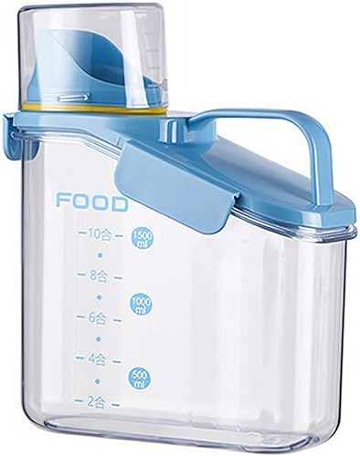 Boîtes de rangement hermétiques transparentes pour aliments secs, 1,5/2 L avec bec verseur, bac d'organisation pour la farine, le sucre et les céréales (bleu, 1500 ml)